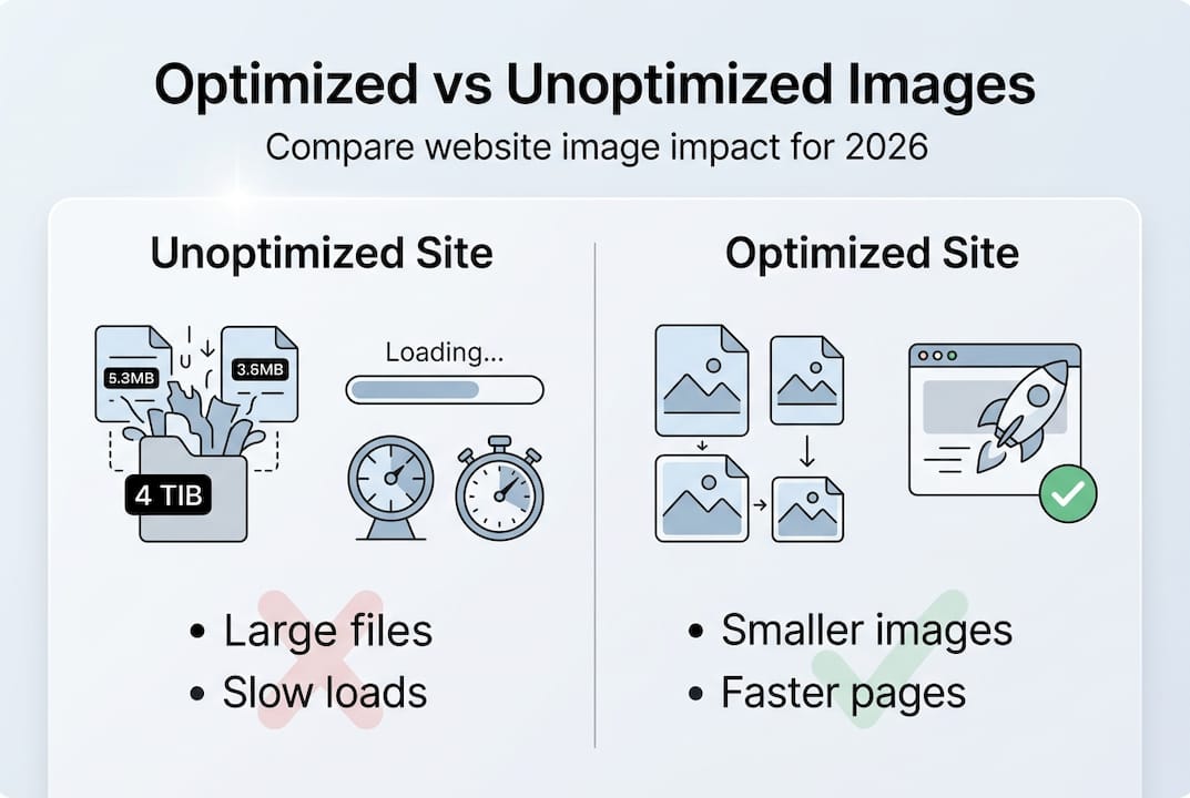 Imagine a local HVAC contractor with a gallery page showing 40 full-resolution before-and-after photos. Each image is 3-5MB straight from the camera. A homeowner in Cedar Park searches for AC repair, lands on that gallery page, and waits. And waits. They leave within 4 seconds and book the competitor who had a faster site. That scenario plays out dozens of times a day for businesses running unoptimized sites.